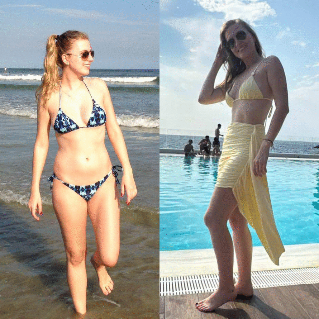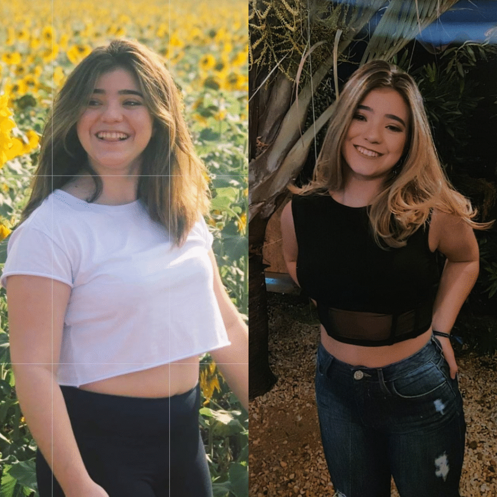 Maria Barbosa é estudante de medicina, tem 19 anos e eliminou 10 kg. Durante a pandemia passou por um período de ansiedade e acabou descontando na comida, chegando a quase 80 kg aos 15 anos. Hoje veste tamanho 38, se sente bem com o corpo e aprendeu a cuidar de si com mais leveza.